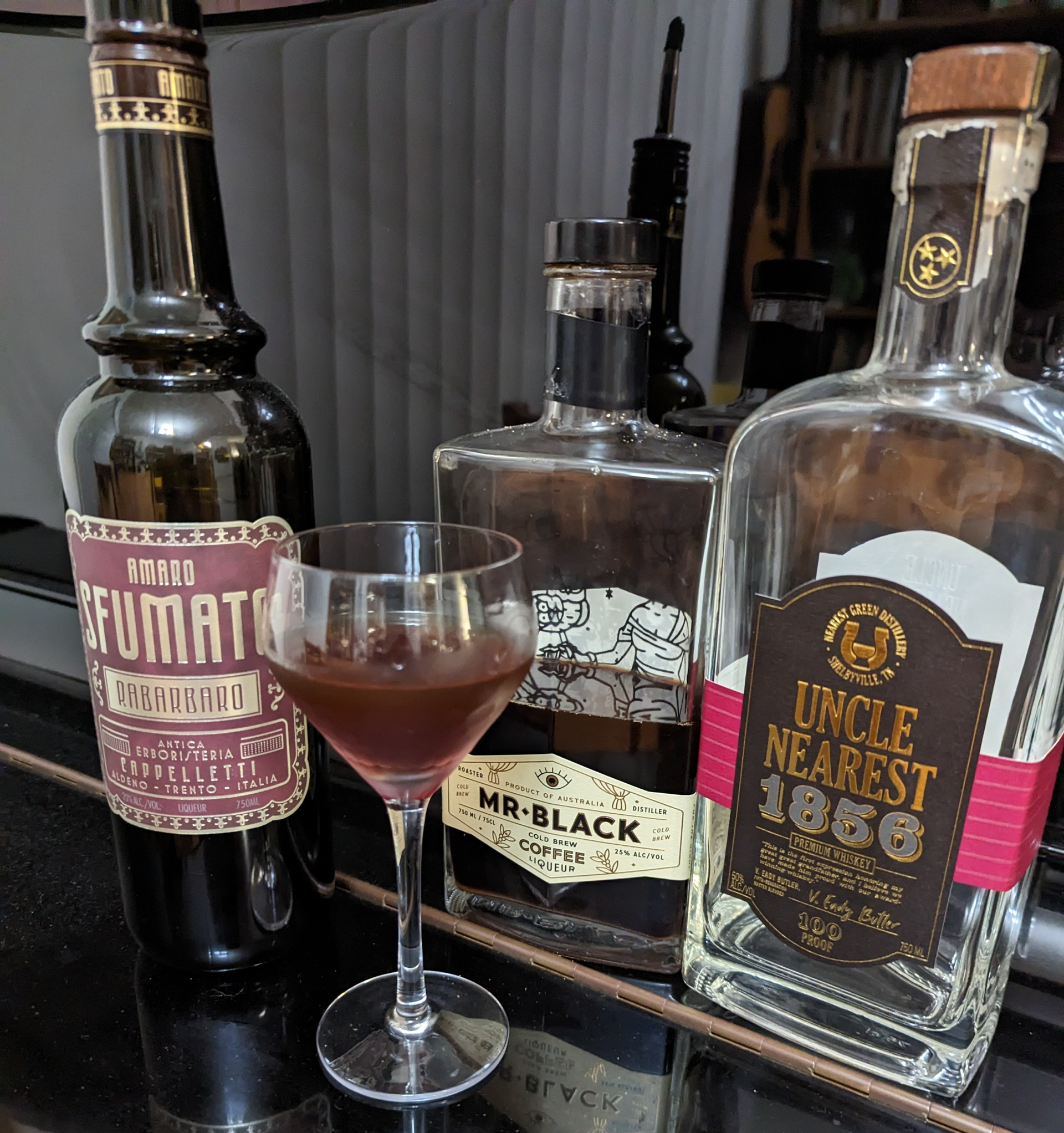 In this amaro’s case, the smoked rhubarb reminds me of the intense roasted flavors of Mediterranean espressos – so I set out to play with that aspect. I combined the Amaro Sfumato with Mr. Black’s focused coffee flavors and rounded it out with Uncle Nearest 1856 whiskey – a 100-proof Tennessee harkening back to the earliest American whiskey traditions. A small addition of demerara syrup adds “fat” and body, and accents the richness of the other ingredients.